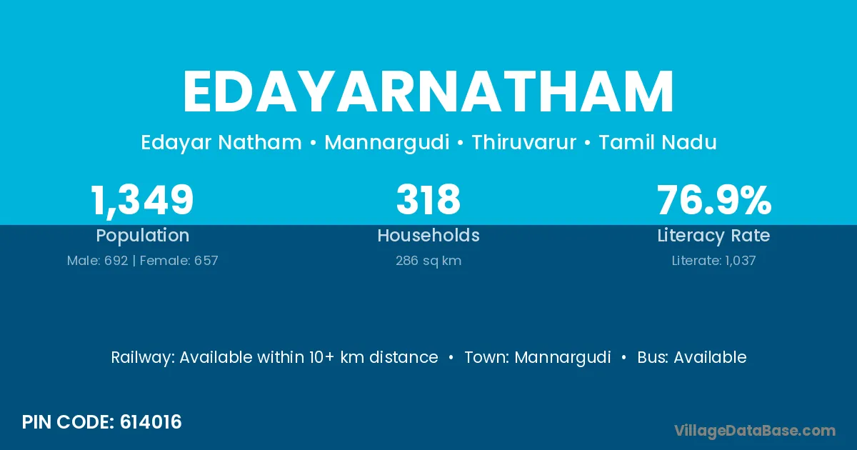 Mannargudi is the nearest town to Edayarnatham village for major economic activities