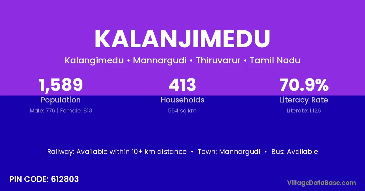 Mannargudi is the nearest town to Kalanjimedu village for major economic activities