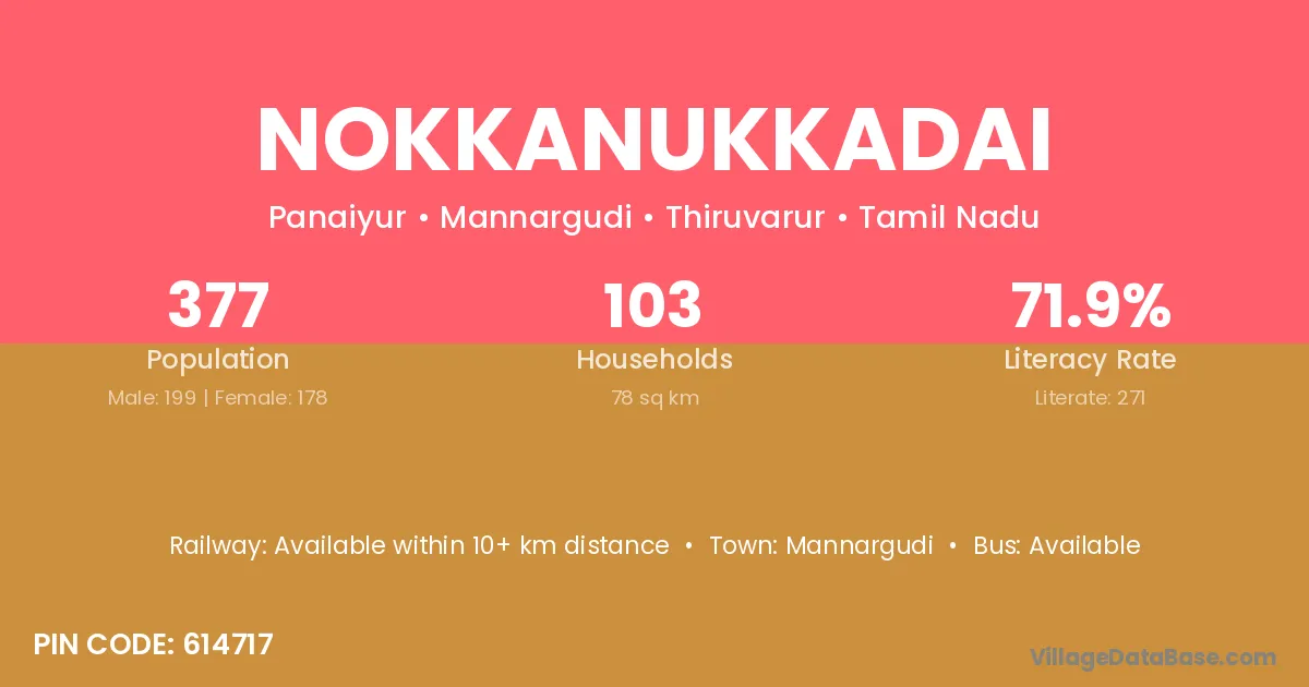 Nokkanukkadai village has a total population of 377 people, of which 199 are males and 178 are females.