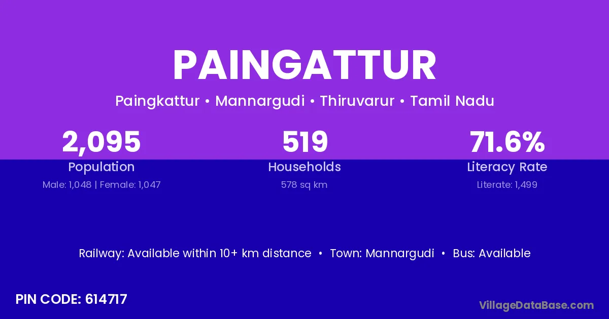 Mannargudi is the nearest town to Paingattur village for major economic activities