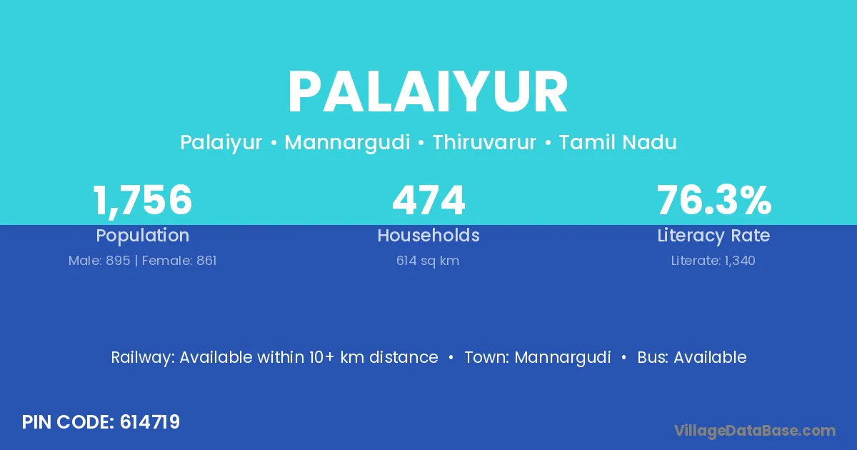 Mannargudi is the nearest town to Palaiyur village for major economic activities