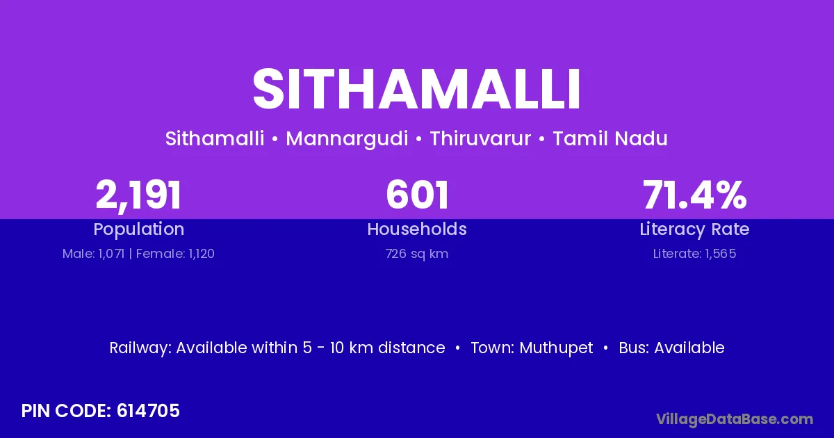 Muthupet is the nearest town to Sithamalli village for major economic activities