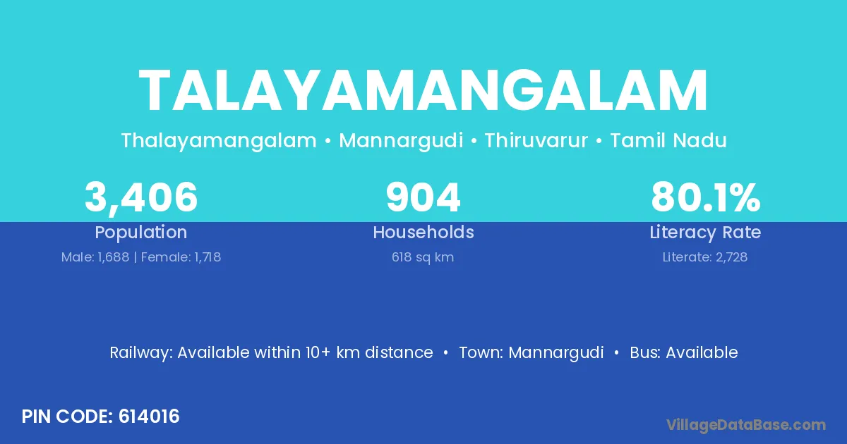 Mannargudi is the nearest town to Talayamangalam village for major economic activities