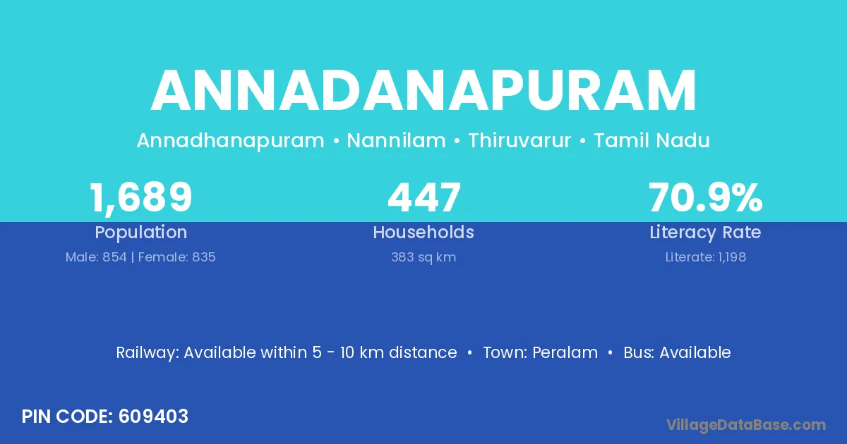Annadanapuram village has a total population of 1,689 people, of which 854 are males and 835 are females.