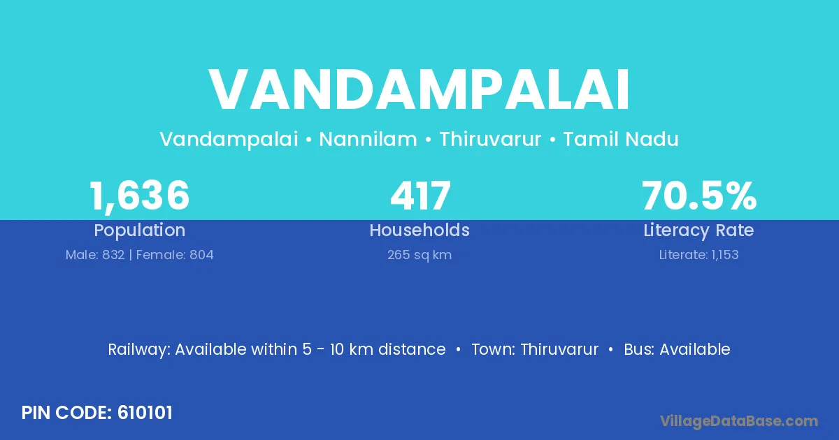 Thiruvarur is the nearest town to Vandampalai village for major economic activities