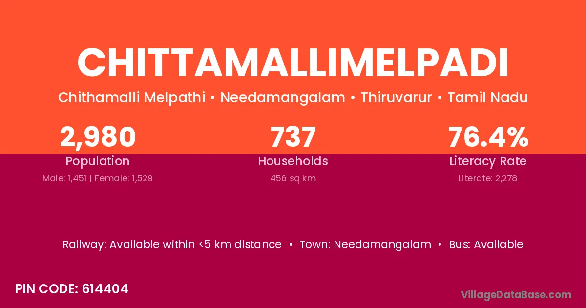 Needamangalam is the nearest town to Chittamallimelpadi village for major economic activities