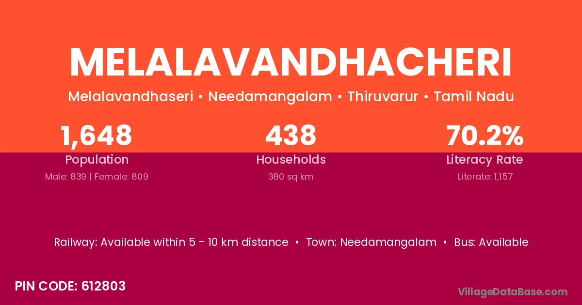 Needamangalam is the nearest town to Melalavandhacheri village for major economic activities