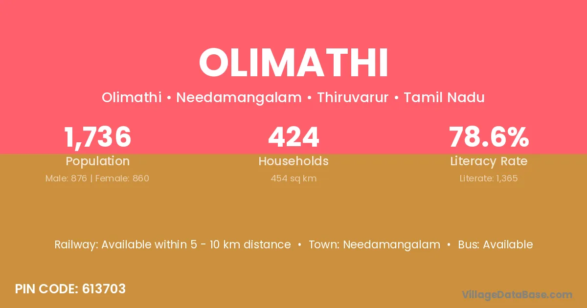 Needamangalam is the nearest town to Olimathi village for major economic activities