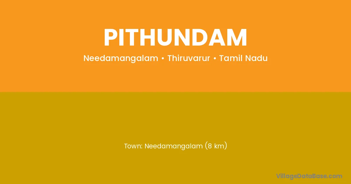 Needamangalam (8 km) is the nearest town to Pithundam village for major economic activities and is located approximately 8 km away.