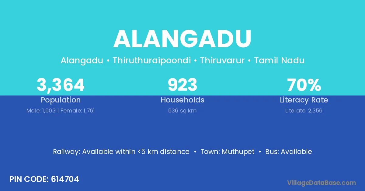 Muthupet is the nearest town to Alangadu village for major economic activities