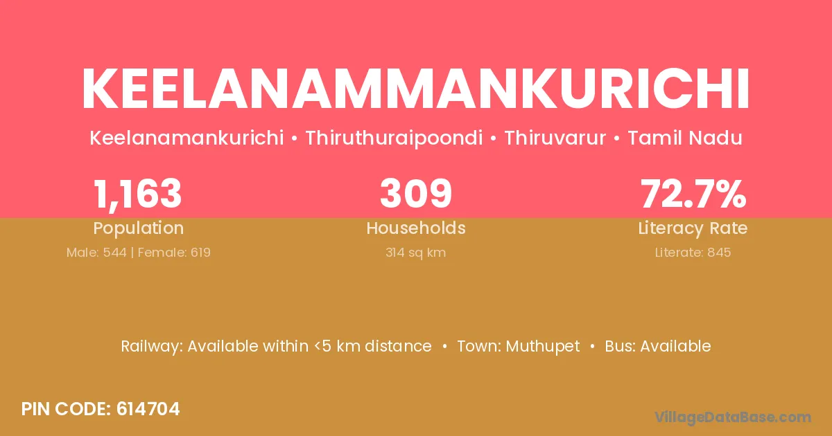Keelanammankurichi village has a total population of 1,163 people, of which 544 are males and 619 are females.