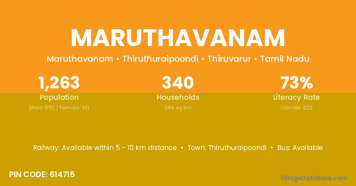 Maruthavanam village has a total population of 1,263 people, of which 652 are males and 611 are females.