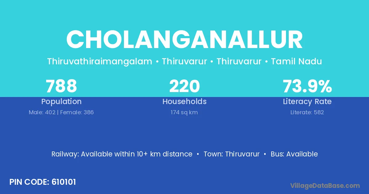 Thiruvarur is the nearest town to Cholanganallur village for major economic activities