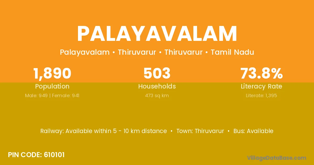 Palayavalam village has a total population of 1,890 people, of which 949 are males and 941 are females.