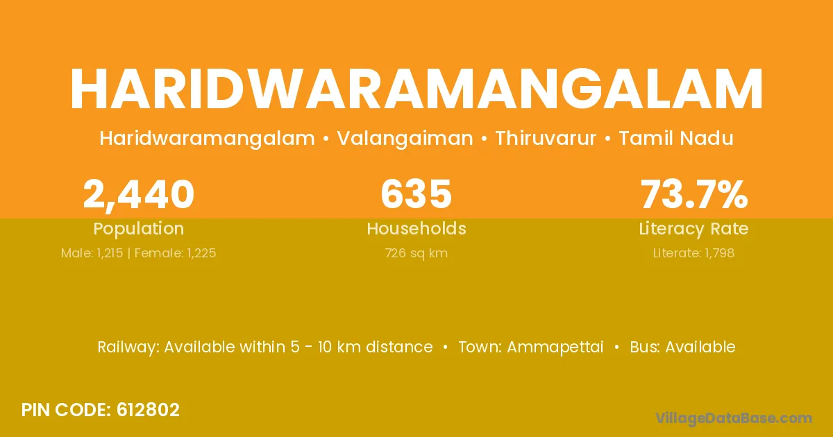 There are approximately 635 households in Haridwaramangalam village.