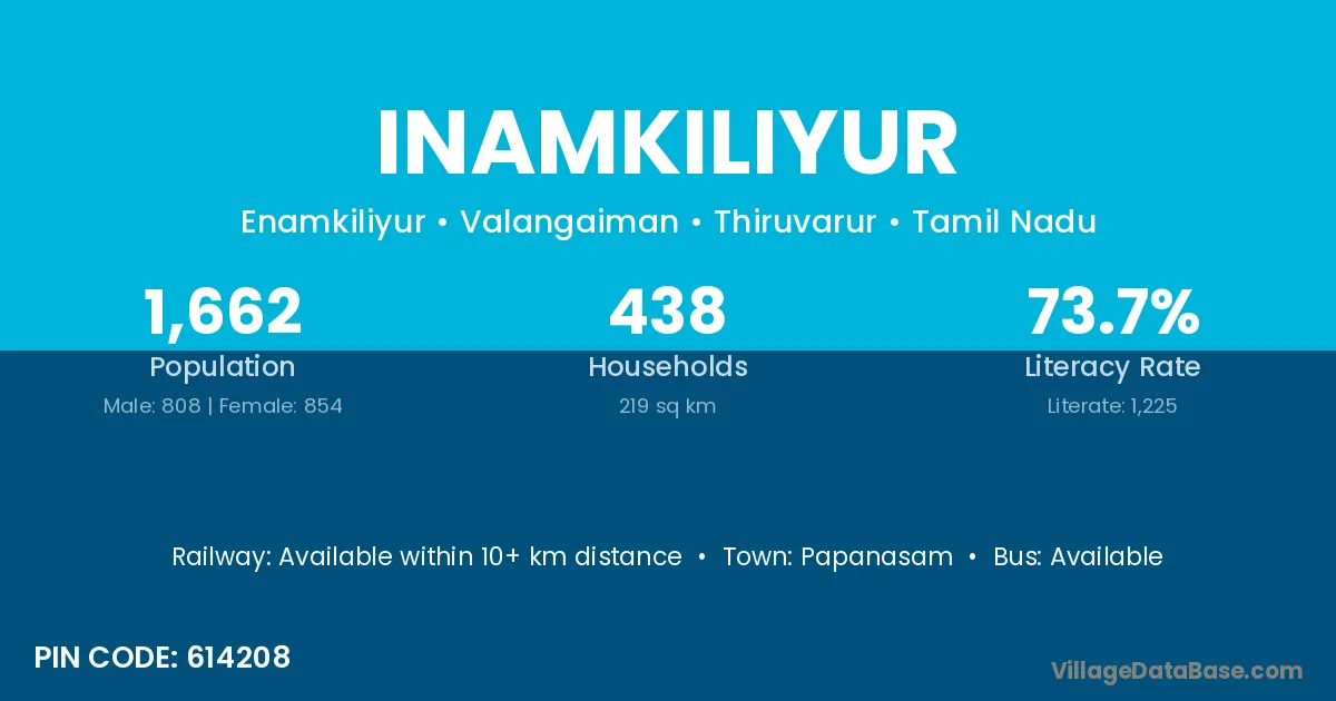 Papanasam is the nearest town to Inamkiliyur village for major economic activities