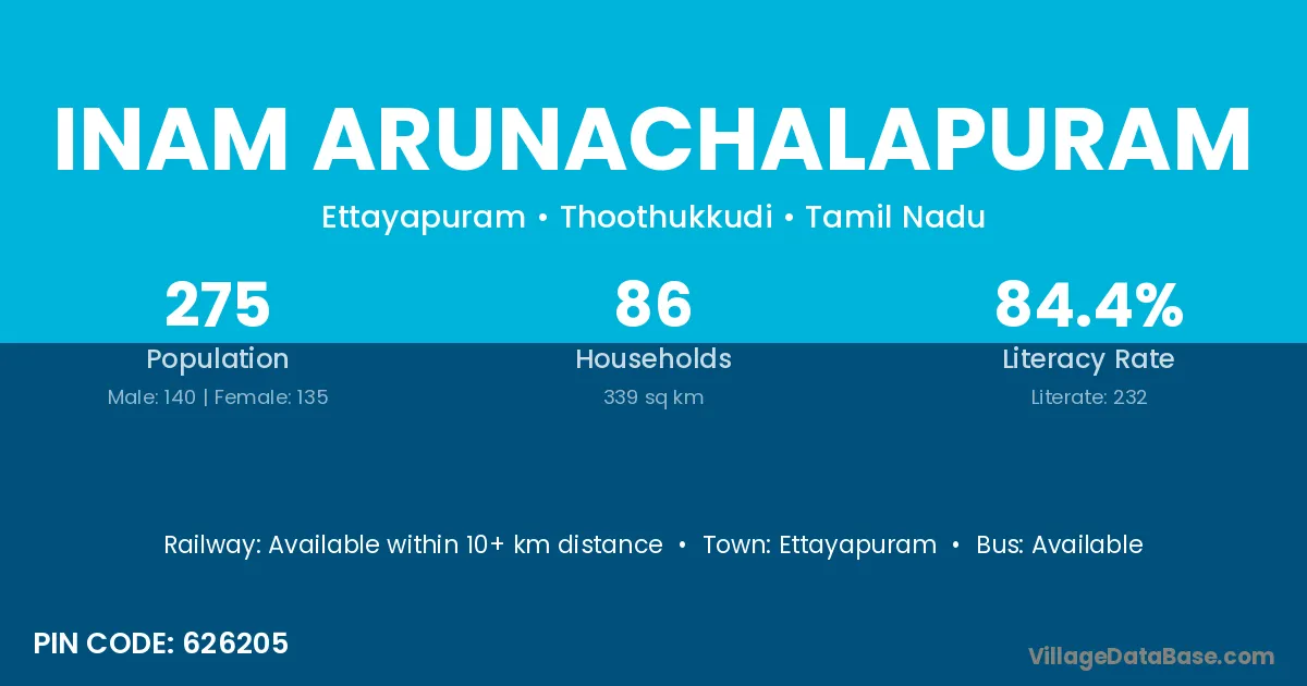 Ettayapuram is the nearest town to Inam Arunachalapuram village for major economic activities