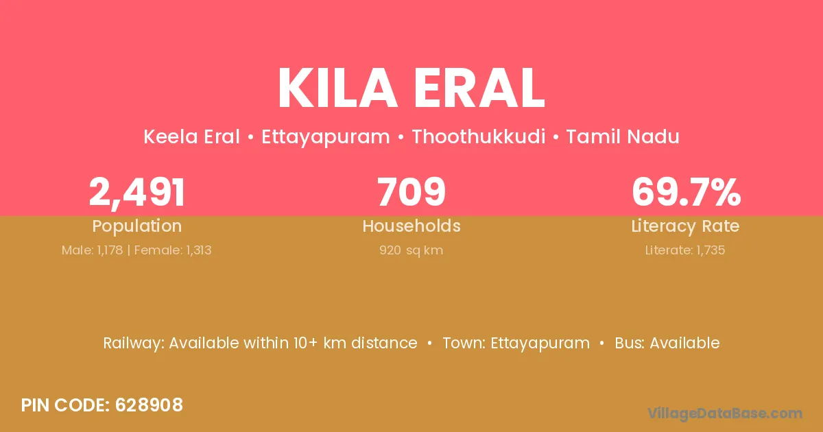 Ettayapuram is the nearest town to Kila Eral village for major economic activities