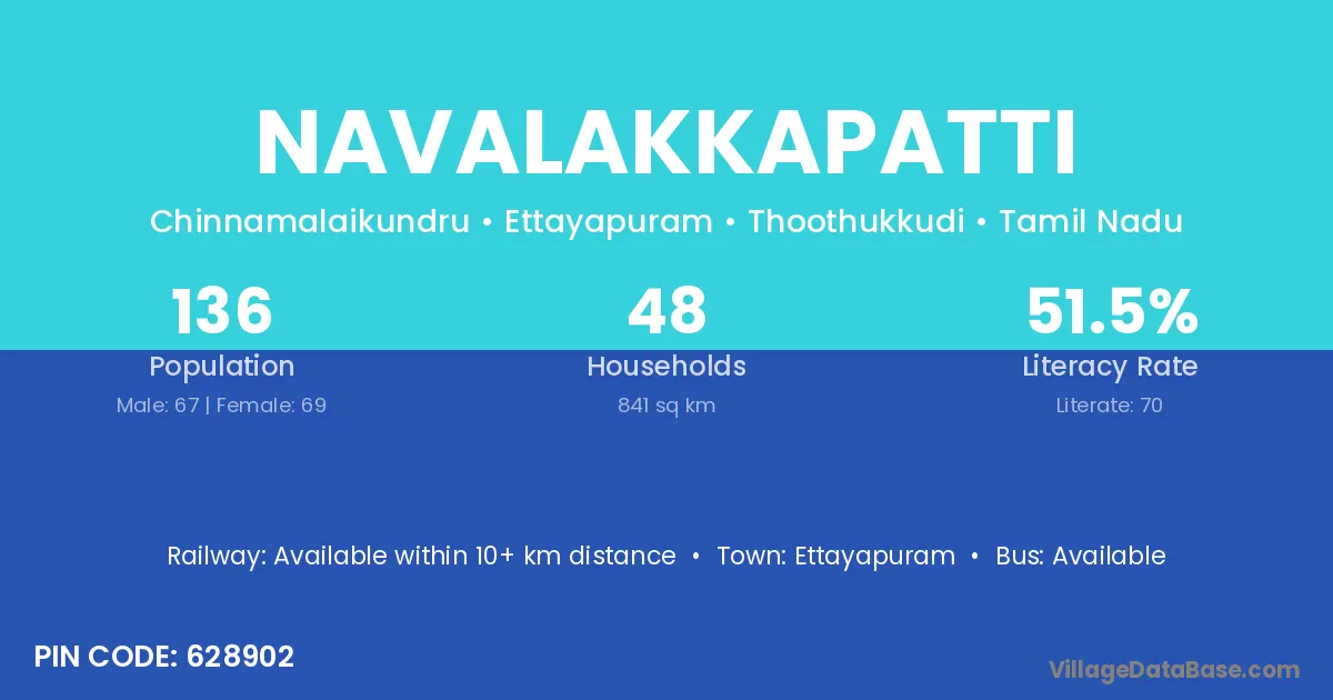 Ettayapuram is the nearest town to Navalakkapatti village for major economic activities