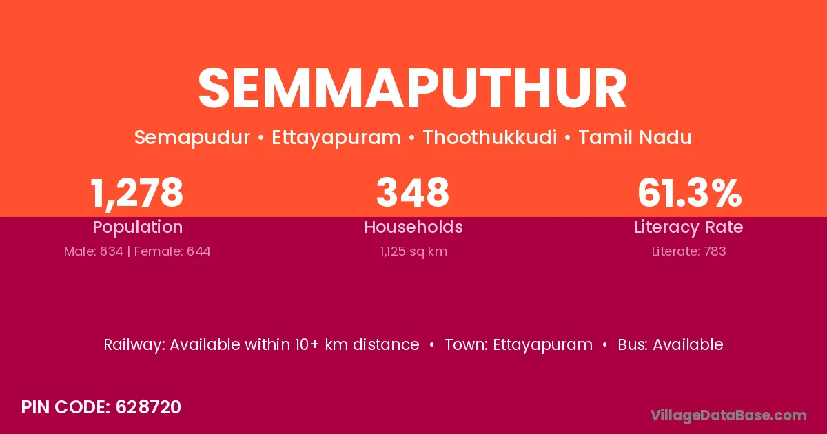 Ettayapuram is the nearest town to Semmaputhur village for major economic activities