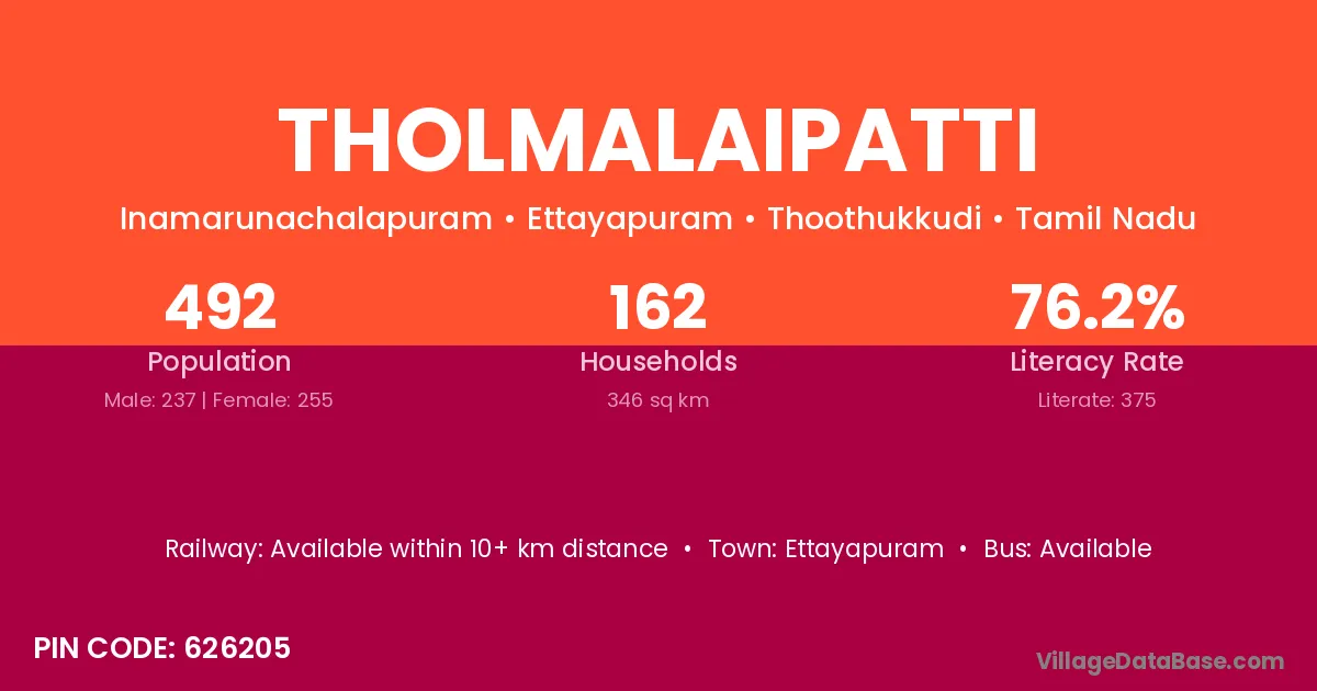 Ettayapuram is the nearest town to Tholmalaipatti village for major economic activities