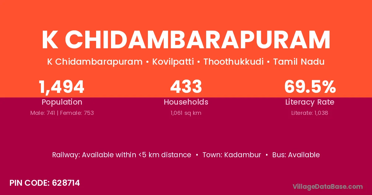 According to Census 2011 information, the village code of K Chidambarapuram village is 628714.
