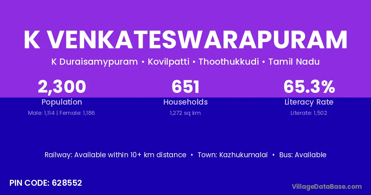 Kazhukumalai is the nearest town to K Venkateswarapuram village for major economic activities