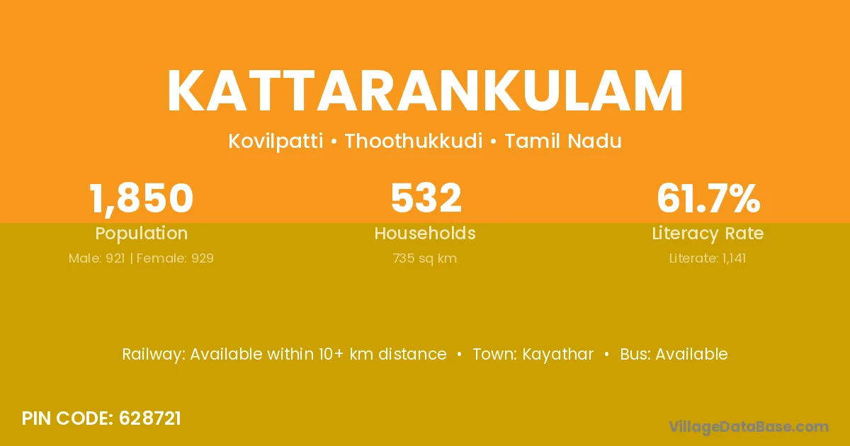 Kattarankulam village has a total population of 1,850 people, of which 921 are males and 929 are females.