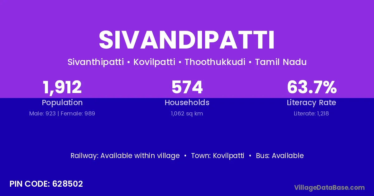 Kovilpatti is the nearest town to Sivandipatti village for major economic activities