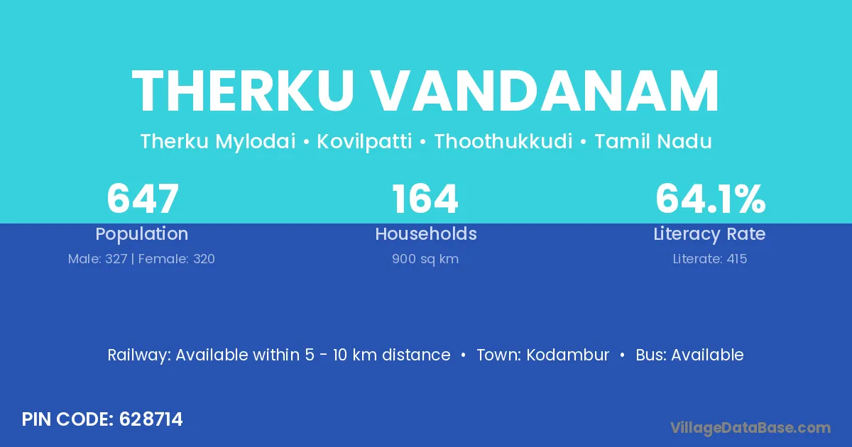 Therku Vandanam village has a total population of 647 people, of which 327 are males and 320 are females.
