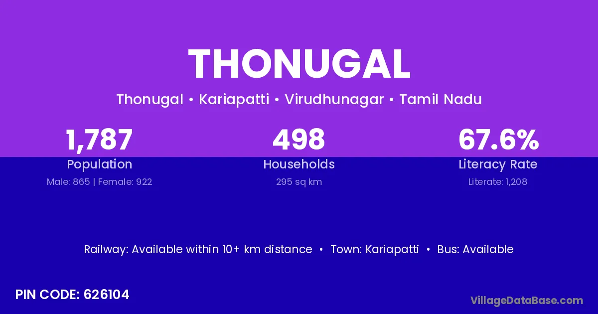 Kovilpatti is the nearest town to Thonugal village for major economic activities