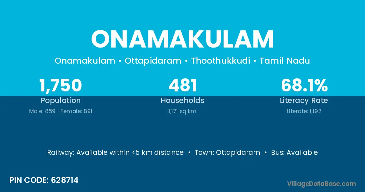 Ottapidaram is the nearest town to Onamakulam village for major economic activities
