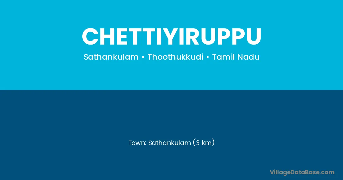 Sathankulam (3 km) is the nearest town to Chettiyiruppu village for major economic activities and is located approximately 3 km away.