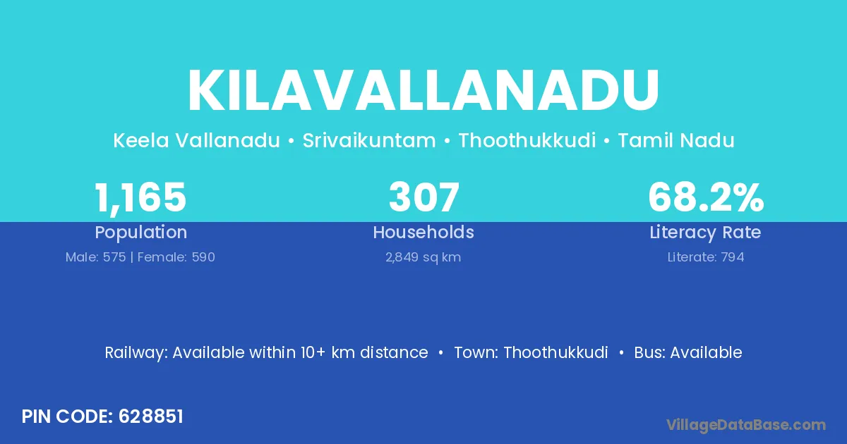 Thoothukkudi is the nearest town to Kilavallanadu village for major economic activities