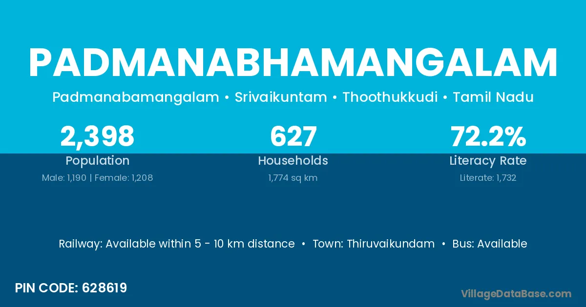Thiruvaikundam is the nearest town to Padmanabhamangalam village for major economic activities