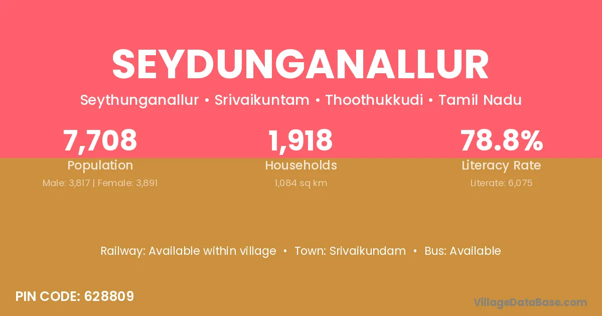 Srivaikundam is the nearest town to Seydunganallur village for major economic activities