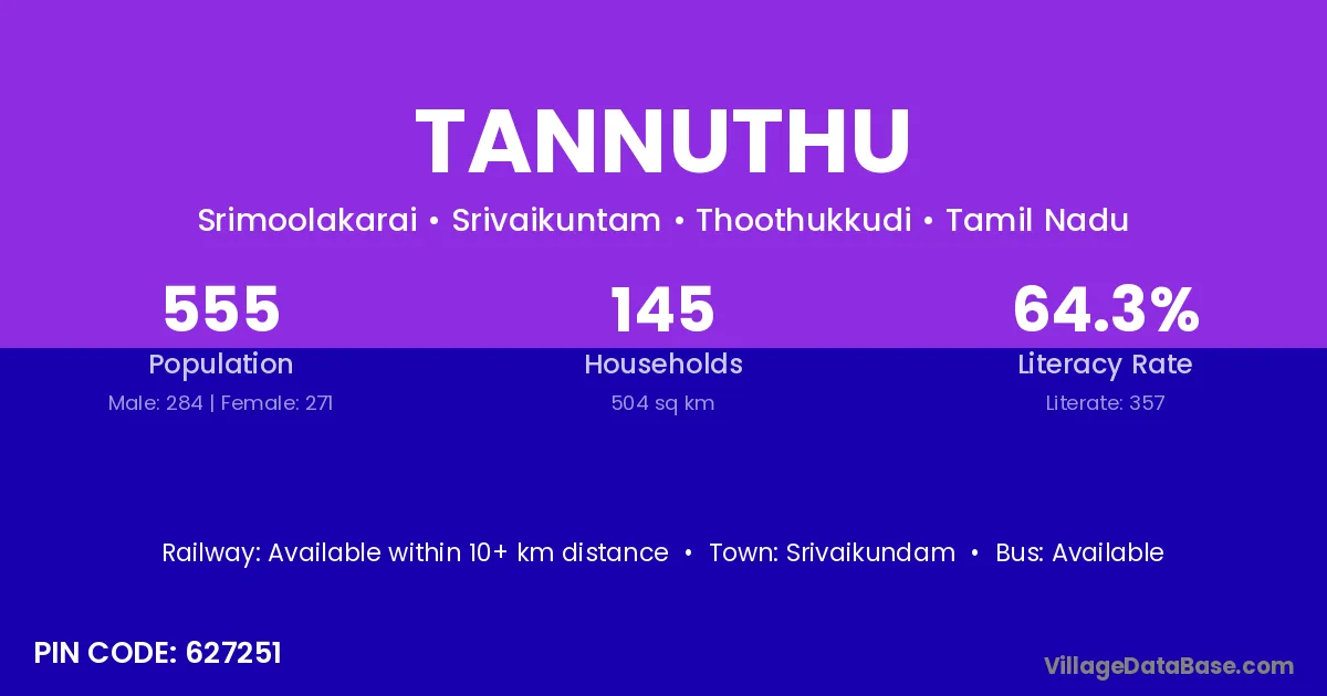 Srivaikundam is the nearest town to Tannuthu village for major economic activities