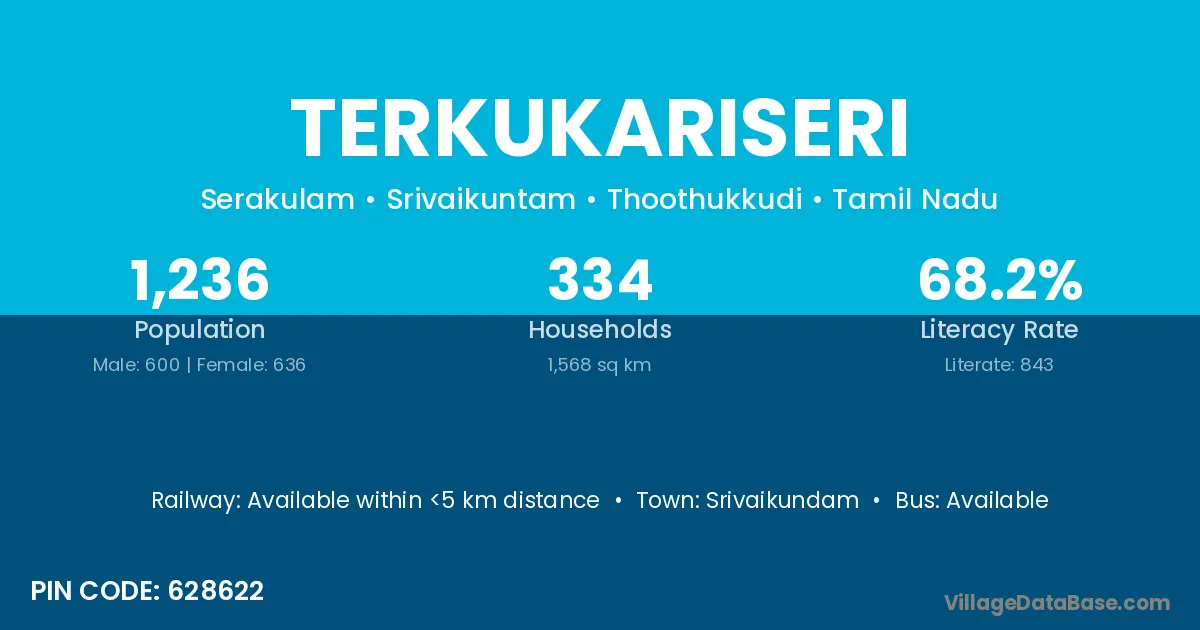 Srivaikundam is the nearest town to Terkukariseri village for major economic activities