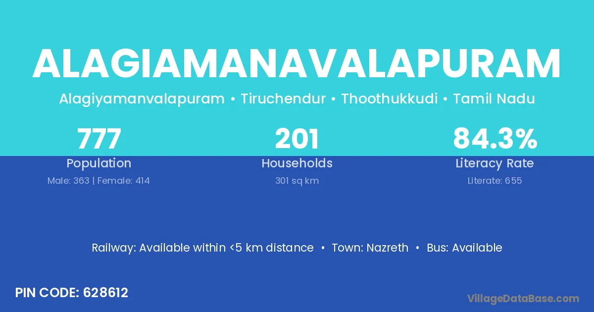 There are approximately 201 households in Alagiamanavalapuram village.