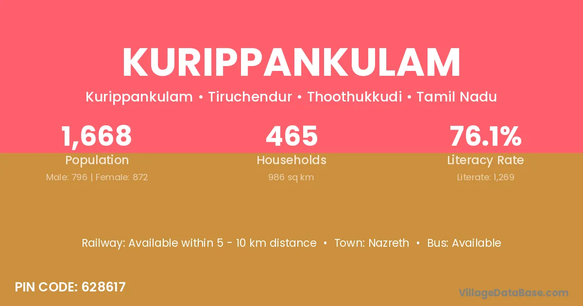 There are approximately 465 households in Kurippankulam village.