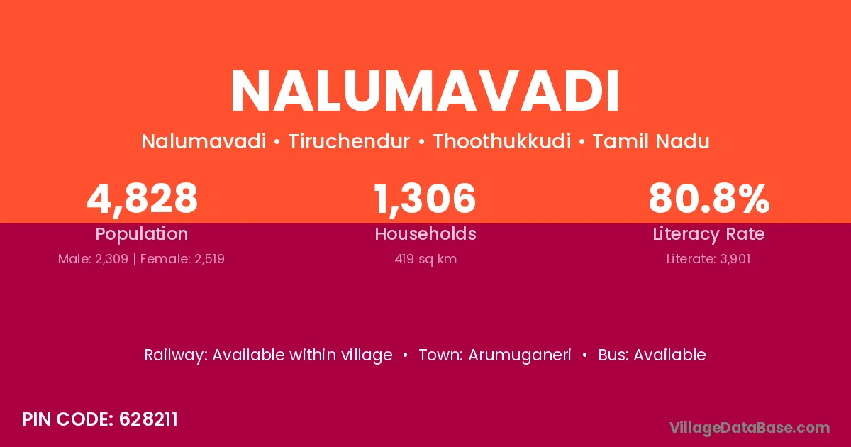 Arumuganeri is the nearest town to Nalumavadi village for major economic activities