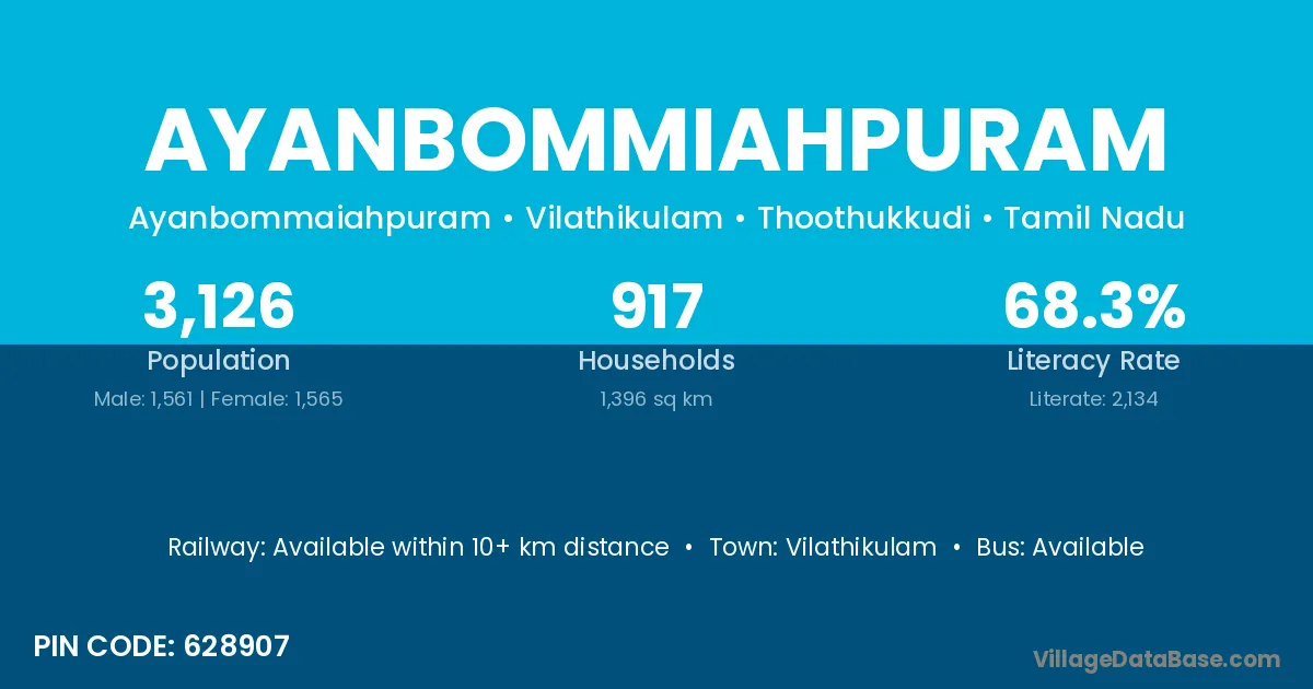 Vilathikulam is the nearest town to Ayanbommiahpuram village for major economic activities
