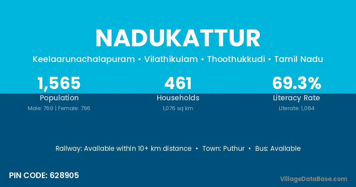 Nadukattur village has a total population of 1,565 people, of which 769 are males and 796 are females.