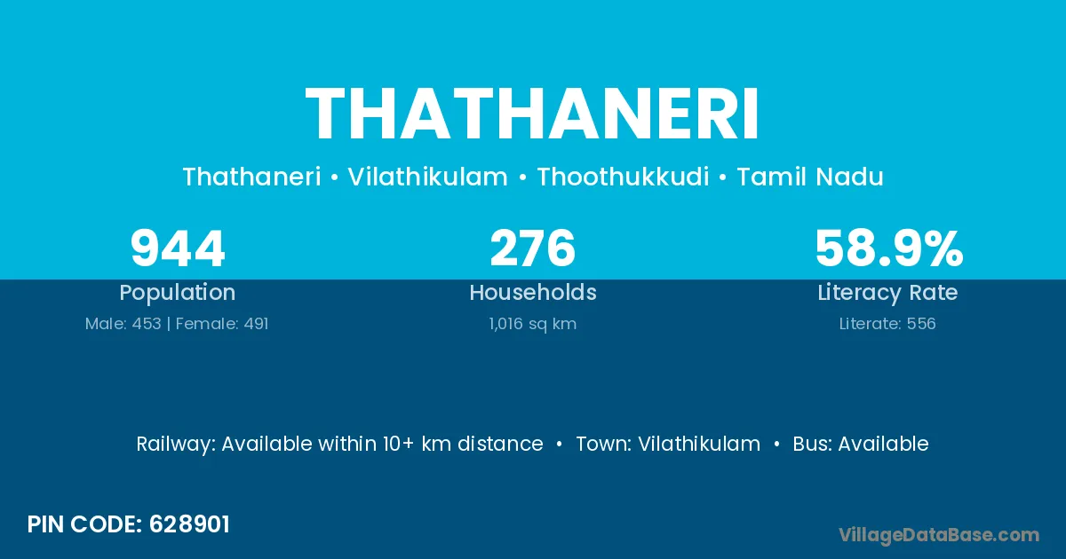 Thathaneri village has a total population of 944 people, of which 453 are males and 491 are females.