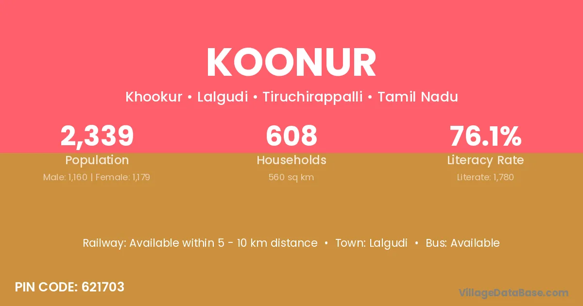 Lalgudi is the nearest town to Koonur village for major economic activities