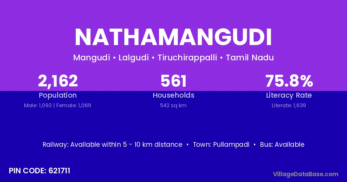 Pullampadi is the nearest town to Nathamangudi village for major economic activities