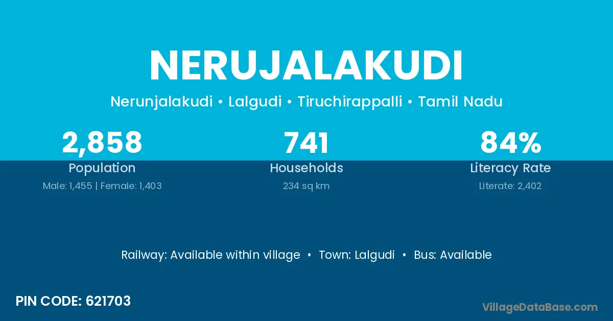 Lalgudi is the nearest town to Nerujalakudi village for major economic activities