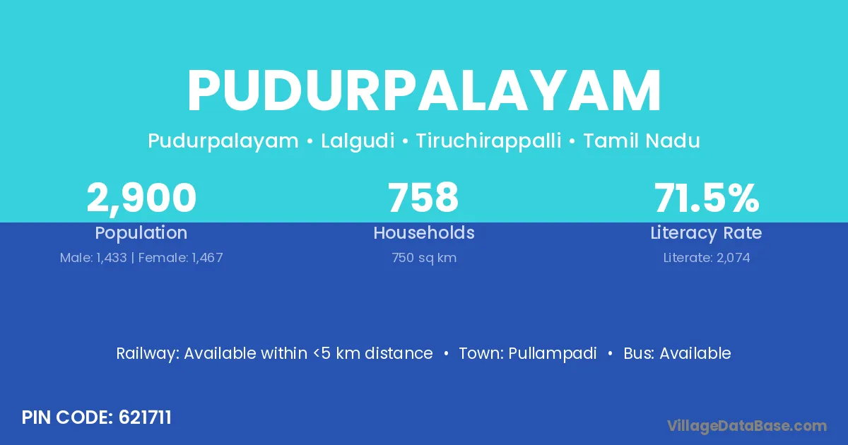 Pullampadi is the nearest town to Pudurpalayam village for major economic activities