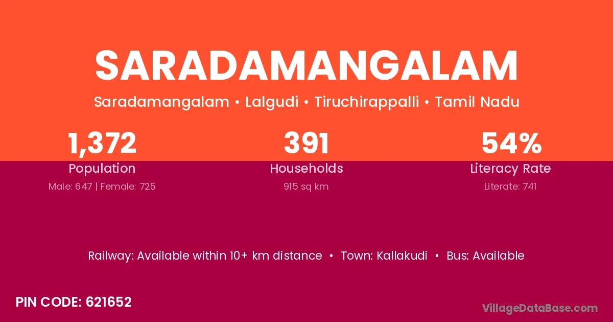 According to Census 2011 information, the village code of Saradamangalam village is 621652.