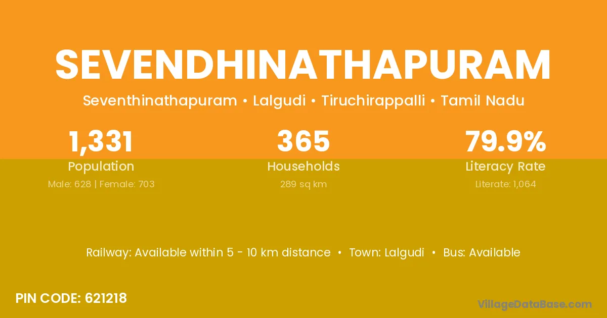 According to Census 2011 information, the village code of Sevendhinathapuram village is 621218.